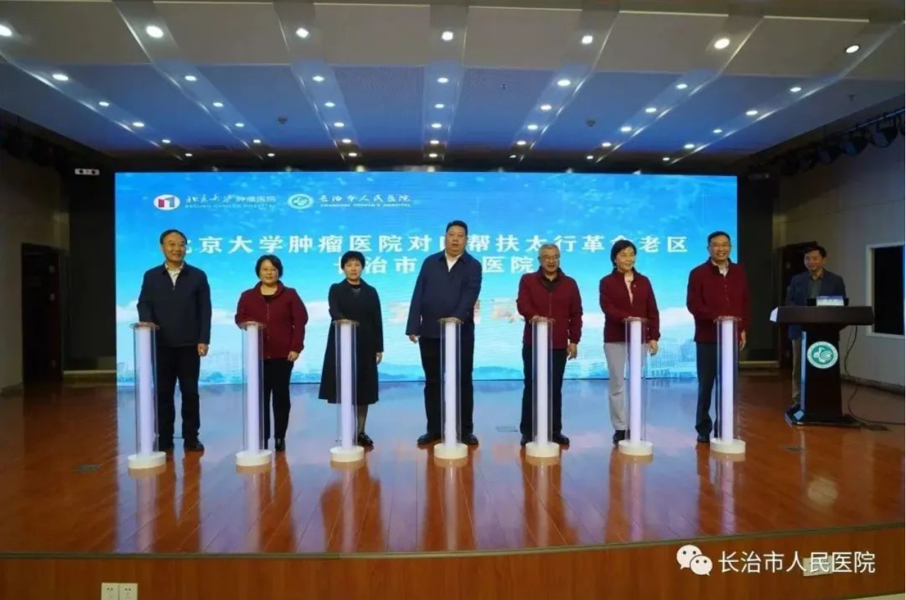 10月12日,北京大学肿瘤医院党委书记朱军、党委副书记许秀菊、副院长宋玉琴、副书记薛冬带领30余名专家来到ug环球注册登录开展大型医疗活动,并深入各对口科室进行教学查房、手术、讲座、疑难病历讨论。上午完成了繁忙的义诊与科室对接工作,下午举办了“北京大学肿瘤医院对口帮扶太行革命老区ug环球注册登录启动仪式”。长治市人民政府副市长邢张朋,长治市卫生健康委员会党委书记、主任王旭琴,ug环球注册登录党委书记李俊,院长胡文庆参加了启动仪式。院长胡文庆主持。北京大学肿瘤医院临床、医技及管理部门的30余名专家,以及ug环球注册登录医务人员到场共同见证了这一激动人心的时刻。