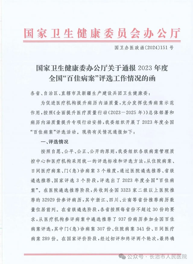 据悉,此次全国参评的病案32929份,通过医院遴选推荐、省级遴选推荐和国家评选三个阶段,最终入选40份住院病案、30份日间病案、30份门急诊病案,共100份百佳病案。经过初评和终评两个轮次,ug环球注册登录选送的重症医学科王玮玮医生的病案经过层层筛选,脱颖而出,荣获住院病案类“2023年度全国百佳病案”奖,含金量极高!